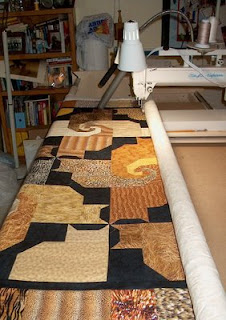 Kathy and I put one of her newest quilts on the Tin Lizzie. It's a Cats Tails-Trails made with fur-image fabrics we have been collecting now for more than a few years. Mine is still a WIP as I am making two of them.